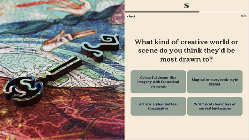 Since StumpCraft puzzles are made for connoisseurs of art and puzzles, quiz takers see a different set of product visuals based on how they answer the question on which themes they are interested in.